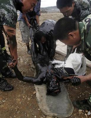chinese oil spill victim 07/21/2010 308 × 401 MSNBC: China spill doubles in size, is deemed ‘severe threat’ Crude pours out after pipeline blast; at least 1 firefighter dead