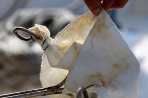Laboratory confirmed oil-soaked sorbent pad. (Photo © Erika Blumenfeld 2010)