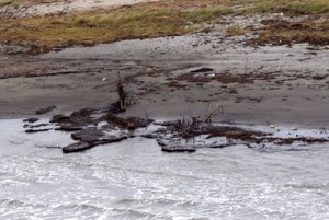 In this Sept. 5, 2012 aerial photo, a combination of alluvial clay and tar mats are seen on the shore of Elmer’s Island in the aftermath of Hurricane Isaac, in Jefferson Parish, La. (AP Photo/Gerald Herbert)
