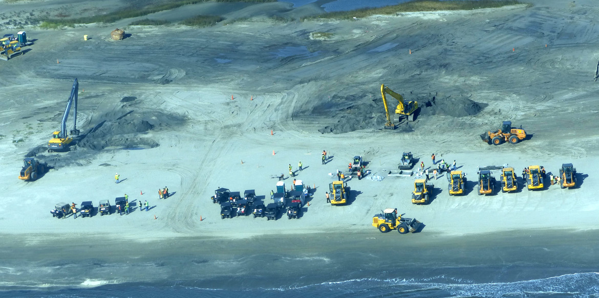 He continued, “This is not new material that washed ashore; it was buried under 6 to 9 feet of sand deposited by tropical storms in 2010 and 2011. The oiled material is 85-90% sand, shells, silt, and water, and 10-15% heavily-weathered residual oil. However, in these breach areas it is difficult to separate this oiled material from the surrounding clean sand, which is reflected in the volume of material recovered.”