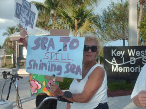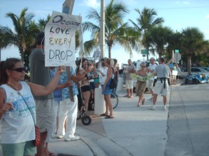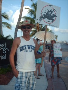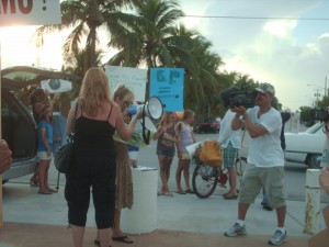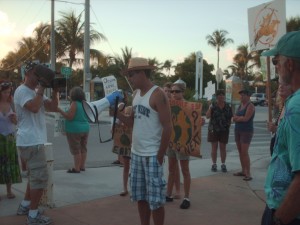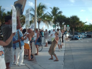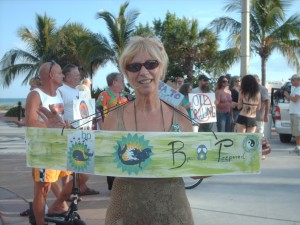 On Saturday, July 10th at sunset, Key Westers gathered at the White Street Pier to protest the BP and its lack of corporate responsibility since the Deep Horizon blowout. Kelly Young and Erika Biddle led the event. Many citizens spoke out and signed a pledge to reduce their oil comsumption by 10%. Everyone hoped to send a message for a clean energy future.